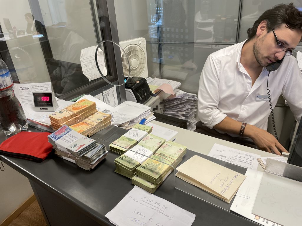 In Argentinien zahlen die Tourist:innen jede medizinische Maßnahme bar cash. Am Tag der Operation mussten wir 1,7 Millionen Argentinische Pesos einzahlen (3500 US Dollar)! Der Berg Scheine ist unten stehend zu besichtigen😁!