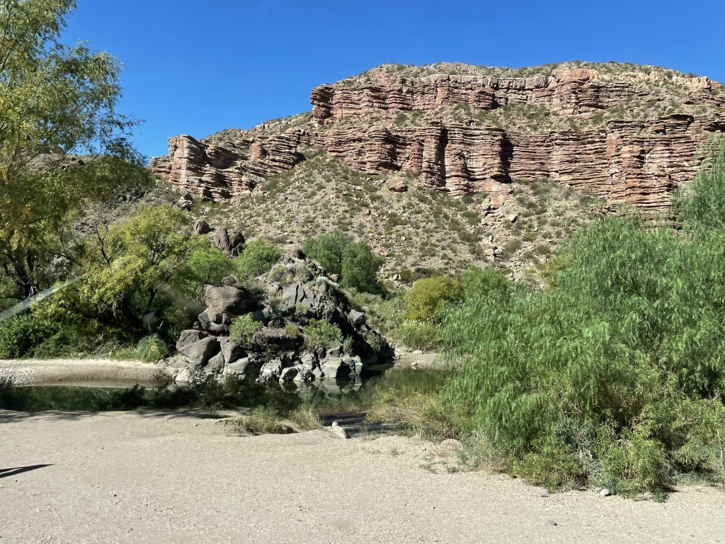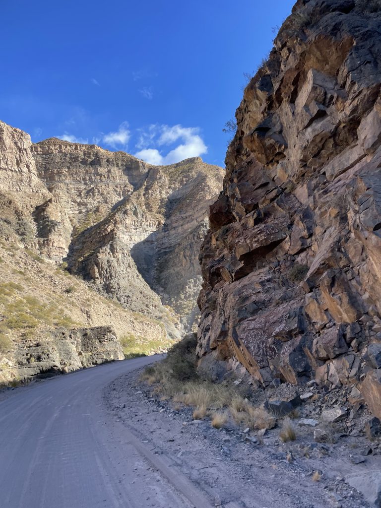 Früh am nächsten Morgen geht es in und durch den Canon del Atuel. Dieser „Canyon“ formte sich vor Millionen Jahren durch die rauen Winde und den Gewässern des Rio Atuel. Er ist ungefähr 70 km lang, an der schmalsten Stelle nur 20m breit und bis zu 300 m tief.