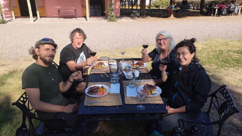Unsere Verabredung mit Sara und Markus (siehe Patagonien Chaiten und Bariloche) verschob sich wegen ihrer Autoreparatur und erst am 12. Mai 2023 klappte es mit dem Wiedersehen! Wir verbrachten zusammen einige sonnige Tage in Mendoza mit leckerem Essen und gutem Wein😀!