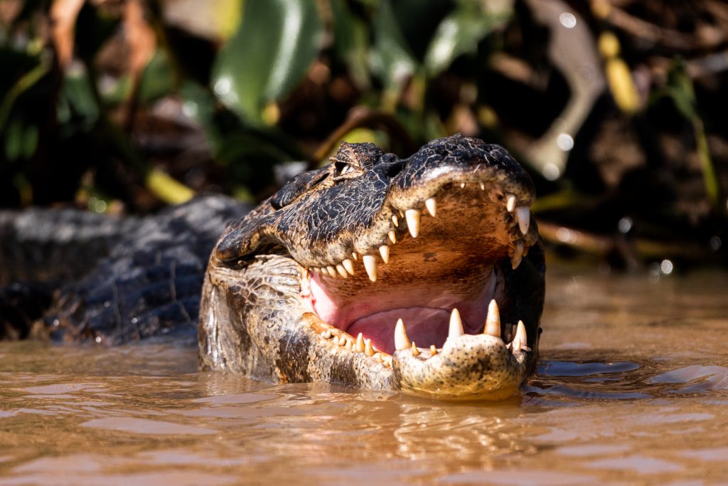 Das Pantanal ist das größte Feuchtgebiet der Erde und wurde von der Unesco im Jahr 2000 zum Biosphärenreservat erklärt. Es ist fast halb so groß wie Deutschland und erstreckt sich über die brasilianische Grenze hinaus in kleinere Teile von Paraguay und Bolivien. Zahlreiche kleine Flüsse fließen aus dem Hochland in die Ebene und der Rio Paraguay mit seinen Nebenflüssen hat nur ein Gefälle von wenigen Metern. So wird während der Regenzeit von November bis März weite Teile der Tiefebene überschwemmt und zwei Drittel des Gebiets stehen unter Wasser. Deshalb überwiegt die Wasserflora wie sonst kaum auf der Welt. Daher ist das Pantanal der Lebensraum für unfassbar viele Pflanzenarten, mehr als 200 Fischarten, bis zu 100 Amphibien- und Reptilienarten. Es ist aber auch Lebensraum von etwa 650 Vogelarten, darunter viele Papageienarten und zahlreiche Aras. Hinzu bevölkern rund 35 Millionen Kaimane das Pantanal – eine höhere Konzentraion gibt es nirgends auf der Welt.