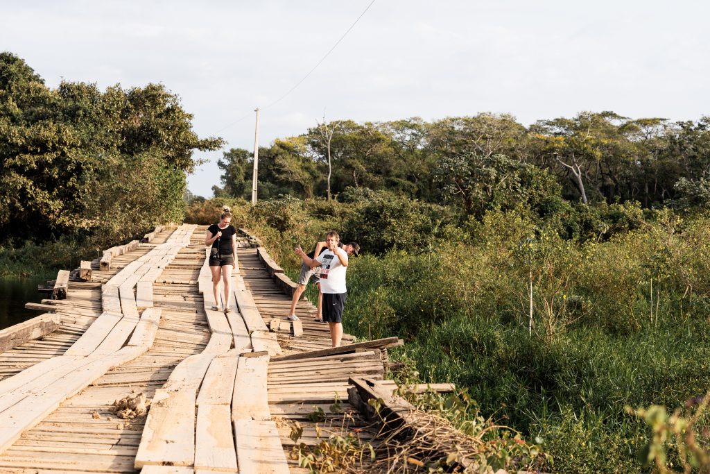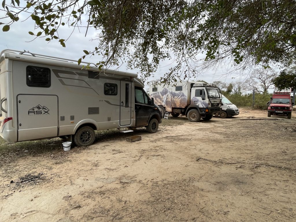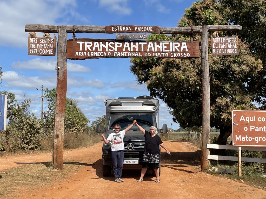 Nach dem wundervollen Tag auf dem Wasser ging es früh um 7 Uhr weiter Richtung Pocone. Das besondere an dieser Naturstraße mit einer Länge von 147 km sind die 127 Brücken. Bis 2016 waren alle aus Holz, erst seit 2016 werden diese nach und nach aus Eisen-Beton-Brücken ersetzt. Aktuell sind nur noch etwas mehr als die Hälfte der Brücken aus Holz – trotzdem halten sich wilde Geschichten über die „unsicheren“ Brücken! Wir fuhren mit 4 Fahrzeugen im Konvoi und nur bei zwei Brücken musste von den „Jungs“ die Sicherheit überprüft werden. Rachel und Stewart sind mit ihrem schwersten Wagen immer als letztes rüber😉🤣! Aus der Panamerica-Gruppe war ca. 3 Wochen später zu lesen dass eine der beiden Brücken tatsächlich eingebrochen ist und aktuell repariert wird. Da hatten wir großes Glück😀🥳!