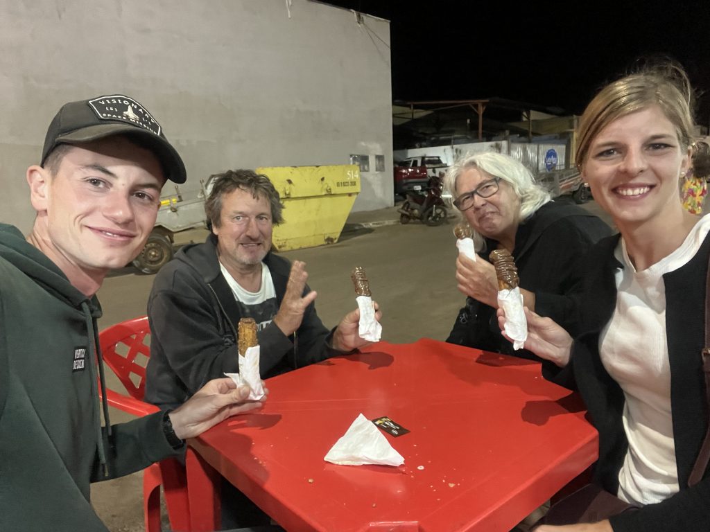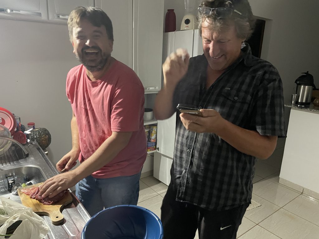 Die Menschen begegnen uns neugierig, wißbegierig, zugewandt und hilfsbereit! Überall wo wir stehen werden wir angesprochen und trotz der Sprachbarriere ist dank der SprachAPP eine Unterhaltung möglich. Von dieser Neugierde und Empathie Ausländern gegenüber können wir uns eine ganz dicke Scheibe abschneiden. Wir fragen nach einem Stellplatz – kein Problem, wir werden bei Freunden auf dem Hof untergebracht und nächsten Morgen zum Kaffee eingeladen. Oder wir werden auch zu einem typisch brasilianischen Essen eingeladen. Luciel kochte uns unter anderem „Farofa“ (Couscous, angebratene Kochbanane, knusprig gebratene Speckwürfel, Frühlingswziebel) und vieles mehr – rund um satt verbrachten wir einen lustigen und unterhaltsamen Abend und übernachteten in unserem Bus vor seiner Haustür! Schweren Herzens nahmen wir am nächsten Morgen Abschied.
