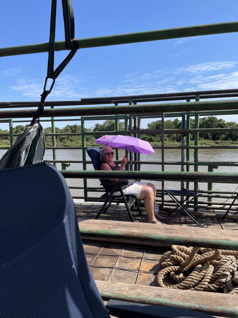Oben seht ihr unseren Ess- und Auf-enthaltsraum – dort saßen wir mit Fernglas oder Kamera – um auf keinen Fall „den“ Jaguar oder andere schöne Tiere zu verpassen😀. Die Landschaft zog langsam an uns vorüber – und die war sehr grün und sehr schön. Wir genossen die entspannte Fahrt!