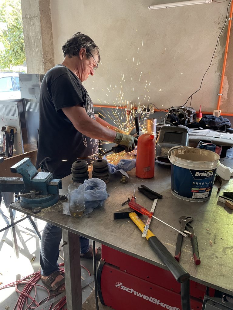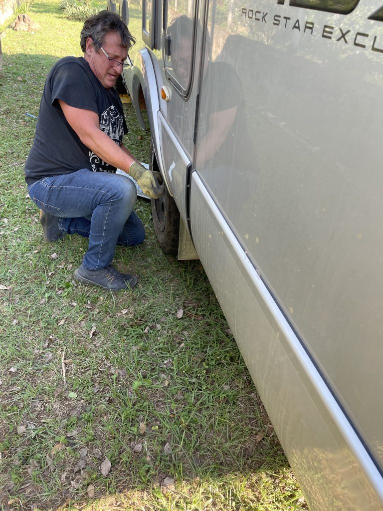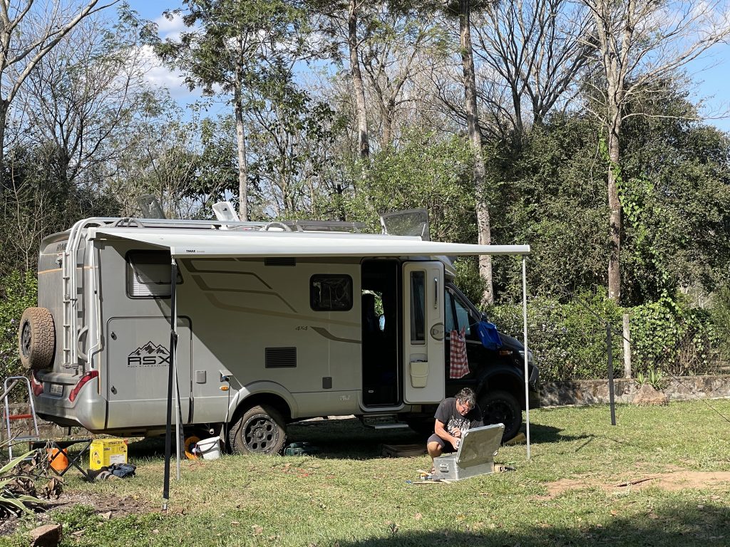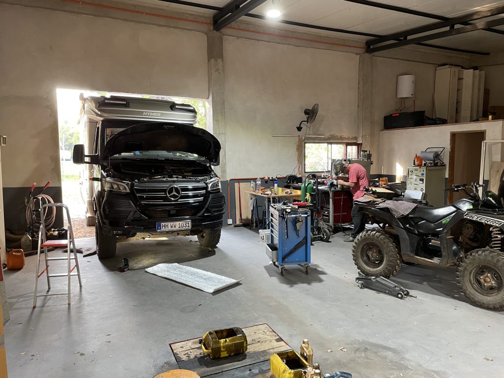 Wir sind hier um unser Auto zu reparieren, es ruckelt sehr während der Fahrt und Gas geben ist fast wirkungslos. Mit Müh und Not kommen wir zu einem Stellplatz, der eine Selbsthilfewerkstatt mit fachmännischer Begleitung anbietet. Diese nimmt Andreas voll in Anspruch😀!
