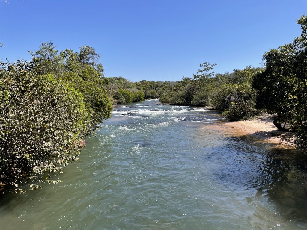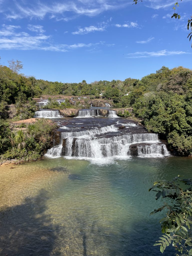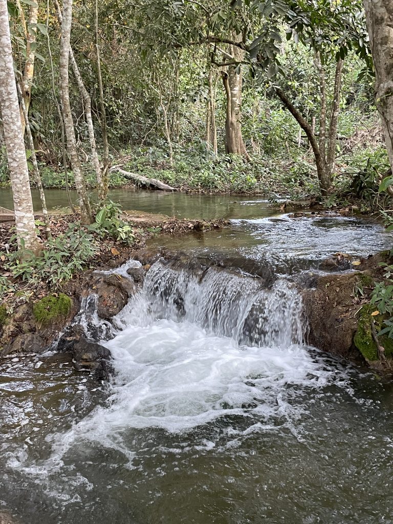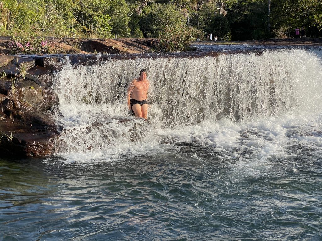 Die Landschaft veränderte sich: der Teil Brasiliens ist kaum industrialisiert und lebt in erster Linie von der Landwirtschaft. Riesige Soja- und Baumwollfelder ziehen an uns vorbei – soweit das Auge reicht! Daneben dann immer wieder die Oasen der kleineren Wasserfälle. Ganz häufig mit einem „Schwimmbecken“ – ganz einfach großartig! Insgesamt eine beeindruckende Landschaft. Viele Flüsse mit kristallklarem Wasser, in denen sich die Fische tummeln, dementsprechend viele Angler:innen an den Ufern oder im Boot unterwegs! Im südlichen Pantanal zogen die Aras, Papageien, Tukane, Störche und viele andere Vögel wieder vermehrt über uns hinweg.