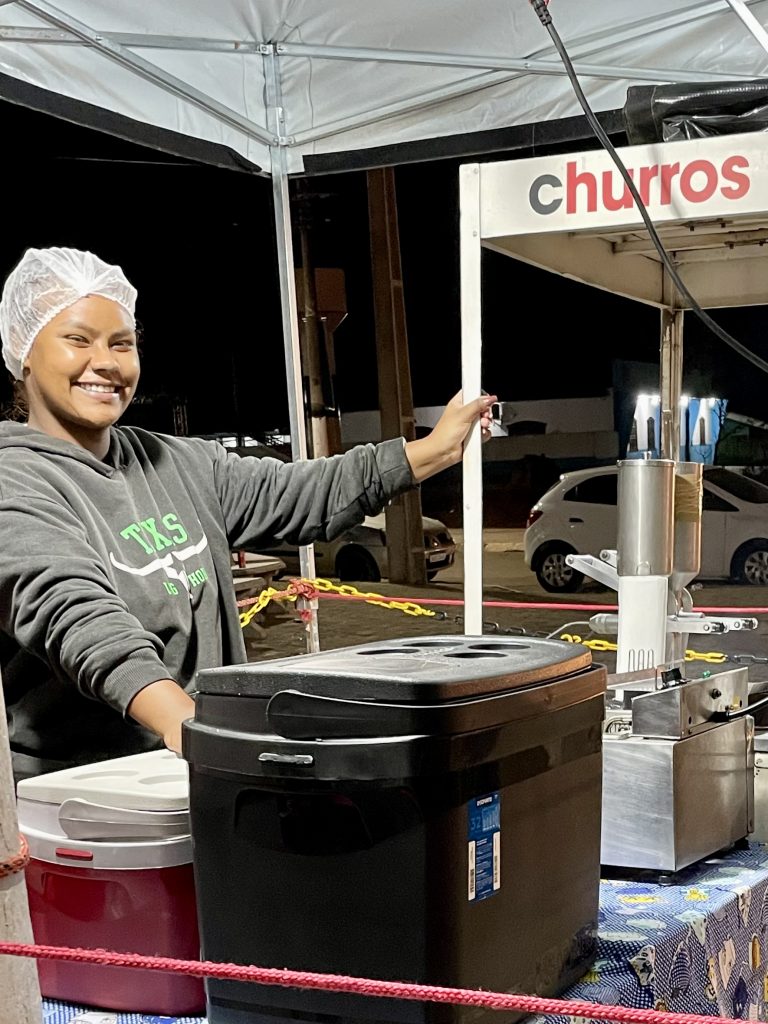 Aber zuerst fuhren wir in die Großstadt Cuiaba zu einem Riesensupermarkt um unsere Vorräte aufzufüllen. Erst dann ging es weiter durch die schöne rostrote Landschaft der Sandsteinformationen der Gegend. Kurz vor der Kleinstadt Chapada dos Guimaraes parkten wir ab. Aber für einen Besuch des Wasserfalls war es schon zu spät. Daher wollten wir dort übernachten um gleich am nächsten Morgen früh die Natur zu erwandern und hatten es uns schon recht gemütlich mit Crackern, Bier und Wein gemacht. Plötzlich tauchte Securitypersonal auf -und wir mussten wieder fahren. Zum Glück standen wir nicht allein, sondern auch ein ortskundiger Brasilianer war betroffen und wusste schnell eine Alternative. So landeten wir mitten im Ort von Chapada Dos Guimaraes. Am anderen Ende des Platzes waren ein paar Stände aufgebaut an denen wir unser Abendbrot einnehmen konnten – Pasteis mit verschiedenen Füllungen und Churros – Klasse!!